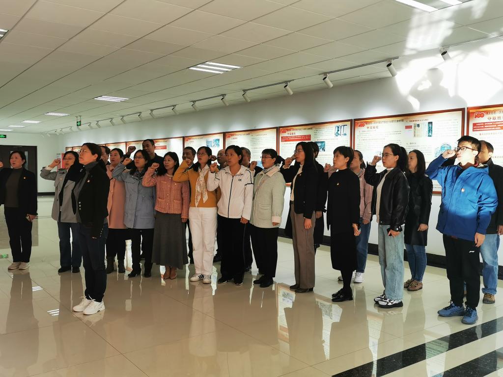 为迎接党的二十大胜利召开,进一步增强党组织的凝聚力和战斗力,激发教师党员的荣誉感、责任感和使命感,10月11日下午,文学与新闻传播学院在博文楼信仰长廊,举行“喜迎二十大,奋进新征程”教师党员重温入党誓词活动。