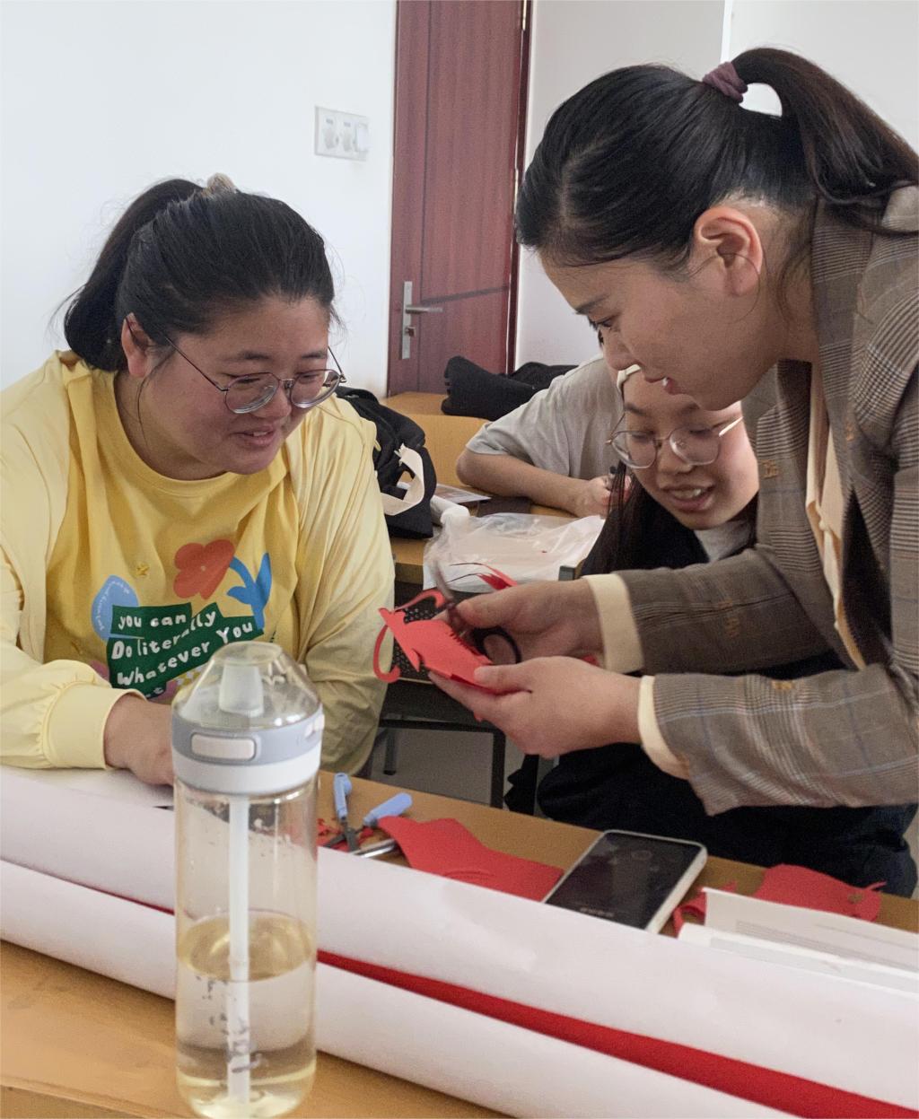 活动中,石万照老师向学生们展示了蝴蝶剪纸画作,介绍了剪纸的起源、制作工具与材料。她结合自身的剪纸经验,从剪制要领、剪制技巧等方面做了详细讲解,并通过作品评析和现场演示,为同学们讲授了剪纸艺术的技能技法,使大家全方位地了解中华传统文化剪纸艺术。活动现场,同学们聚精会神,认真学习了相关知识,并通过石万照老师的手把手式教学,陆续完成了自己的剪纸作品。