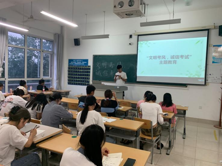 为宣传诚信考试精神,坚决杜绝期末考试作弊行为,严肃考风考纪,增强学生诚信考试意识,2022年6月15日在博文楼教室召开“文明考风,诚信考试”主题班会。学院各年级同学参加了此次班会。