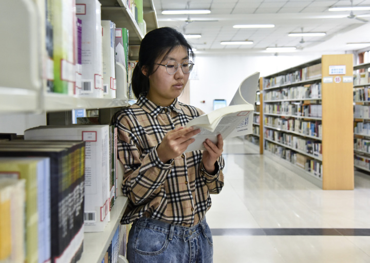 秦硕表示,她有时也会阅读电子书,但总觉得少了纸质书的“质感”,就如同在复习时,总是要把知识点写在纸上才能感到安心。自进入大学以来,秦硕从未在娱乐上挥霍时间,在升入大三后,学业压力增加,也开始为就业做准备,读书时间暂时被压缩,她也依然没有放弃读书,只要有闲暇就会捧起书本。在短暂的交流中,记者感到秦硕的言行举止都表现得从容得体,而这正得益于日常的积累。