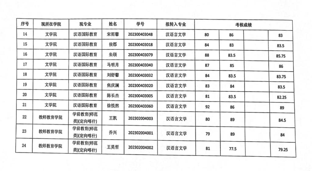 2023-2024-2学期申请转专业学生考核成绩,经beat365唯一官网转专业工作领导小组审核后予以公示,公示时间自2024年7月11日至7月13日,请参加转专业考核的同学及时查看附件。公示期间如有异议,请向文学院转专业工作领导小组提交书面申请(签署真实姓名和本人联系电话),并提供相关材料。