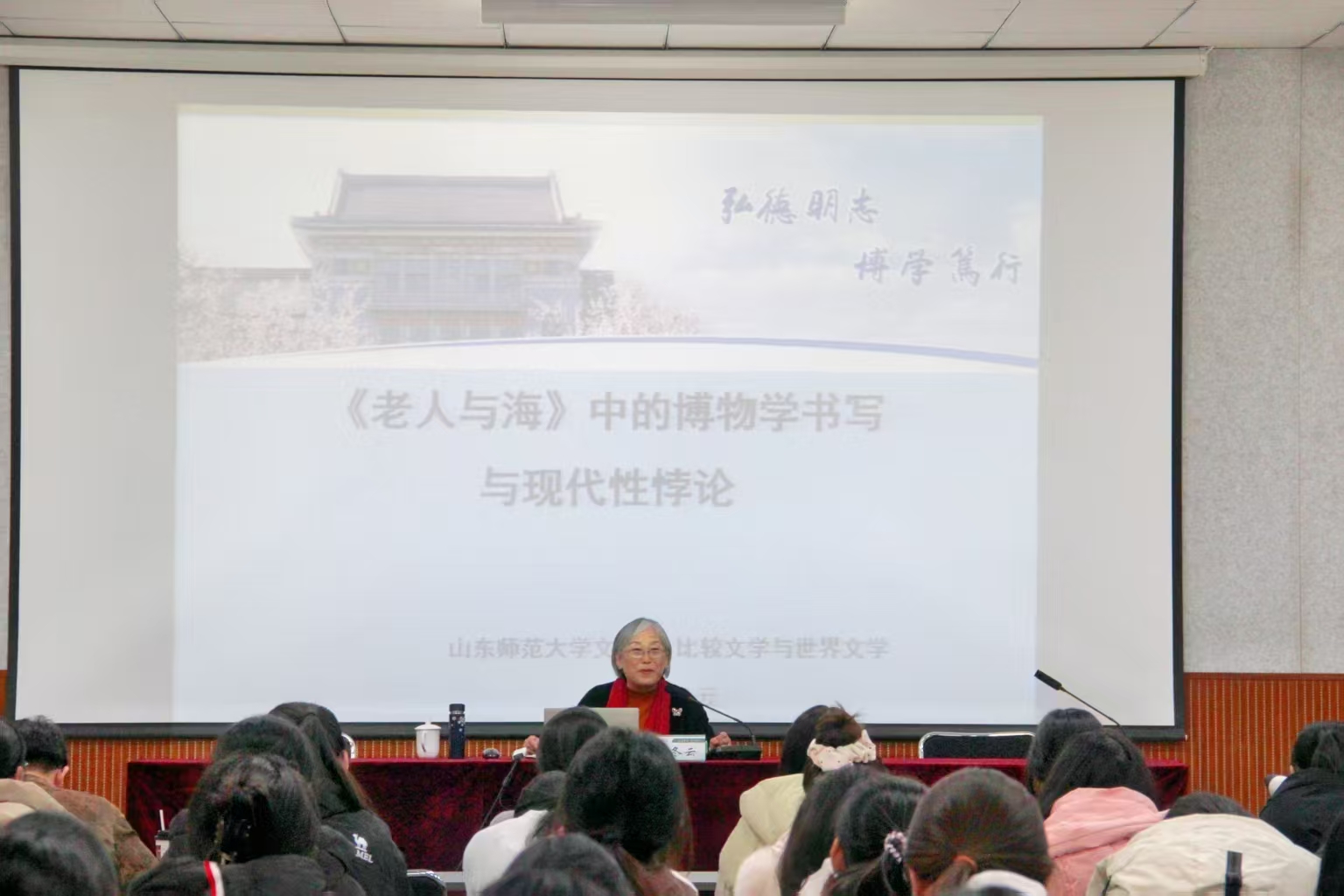 2025年12月9日,山东师范大学文学院博士生导师于冬云教授,应beat365唯一官网之邀,来我校做题为“《老人与海》中的博物学书写与现代性悖论”的讲座。