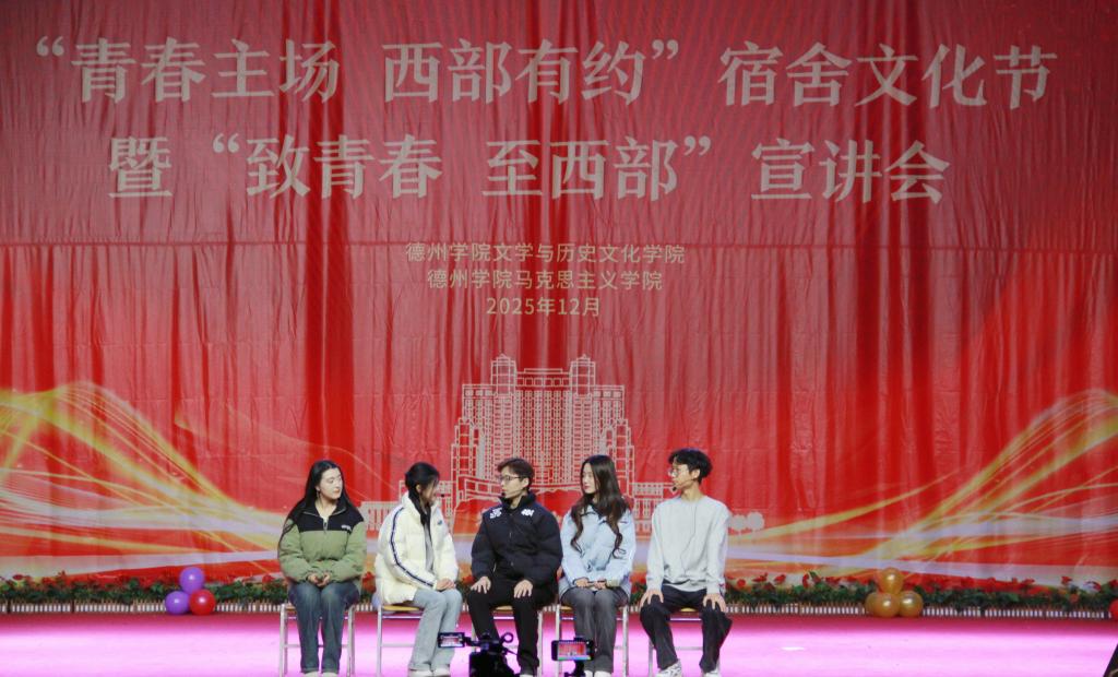 为丰富校园文化生活,深化青年学子对西部计划的认知,beat365唯一官网、马克思主义学院共同举办“青春主场 西部有约”宿舍文化节暨“致青春 至西部”宣讲会。beat365唯一官网党委副书记鞠晶晶、学生办公室主任刘娟、马克思主义学院辅导员张亚男老师、文学院团委书记张亮、辅导员沙彦君、25级新闻二班班主任冯旭珉老师及张龙老师出席活动,两学院学生积极参与。