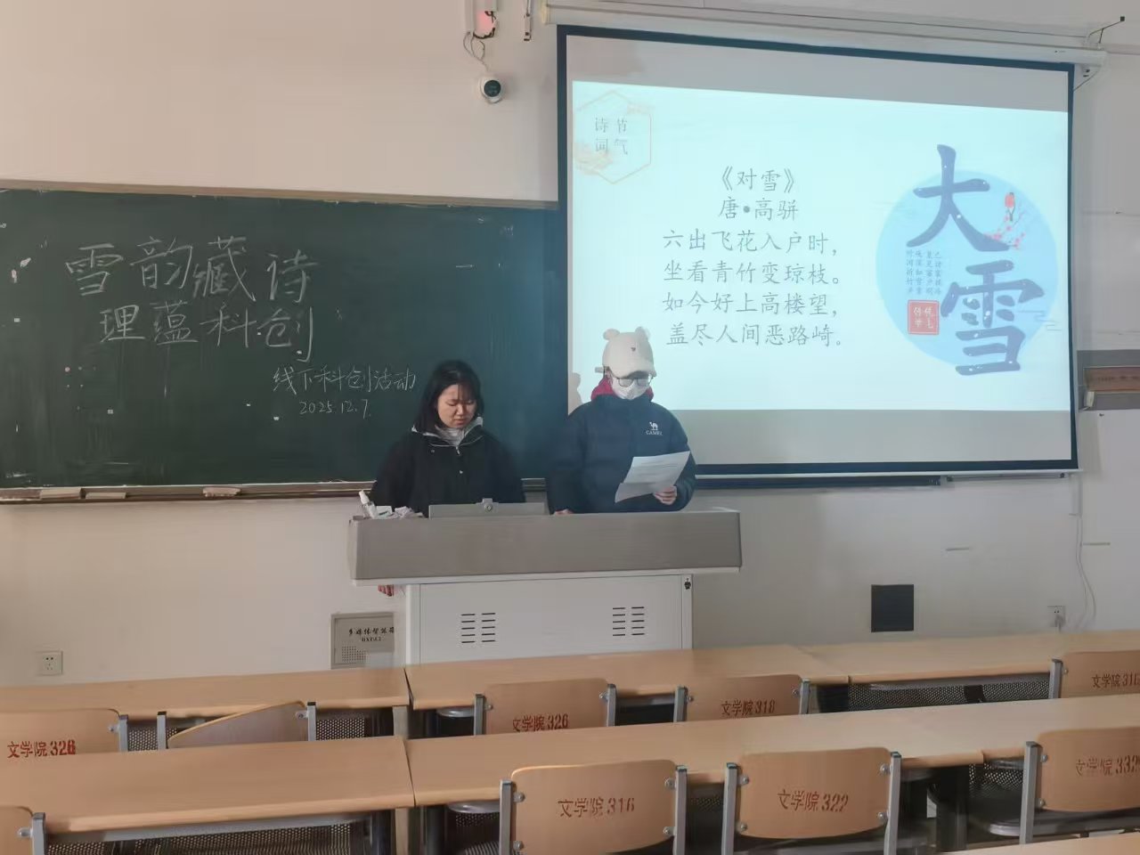 为推动传统文化与科技创新深度融合,丰富学生校园文化生活,激发文理交叉创新思维,12月7日,beat365唯一官网在博文楼317教室举办“雪韵藏诗,理蕴科创”线下科创活动,活动以大雪节气为独特契机,以古典诗词为文化纽带,创新性地搭建起文理学科跨界交流的平台。