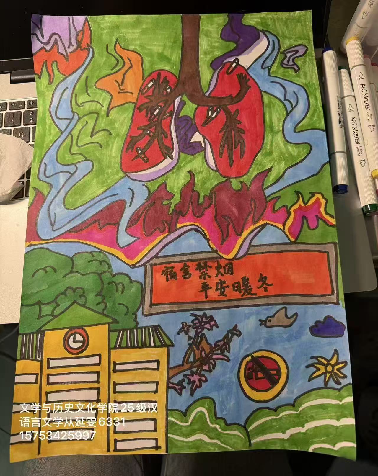活动期间,各宿舍创作氛围热烈。同学们围绕“我的宿舍我的家”“德院四季”及宿舍安全警示等主题,各展所长、协作创作。挥毫泼墨间,一幅幅国画、水彩定格了校园冬日的静谧,勾勒出宿舍生活的温馨;巧思迸发处,剪纸、泥塑融入鲁锦元素,嵌入诗词典故,使作品兼具美感与文史底蕴;聚焦安全主题时,鲜明的色彩与生动的画面传递禁烟倡议,筑牢住宿安全防线。创作现场笑语盈盈,大家互相出谋划策、分享技巧,在交流协作中深化了彼此情谊,也让每份作品成为集体智慧与青春活力的见证。