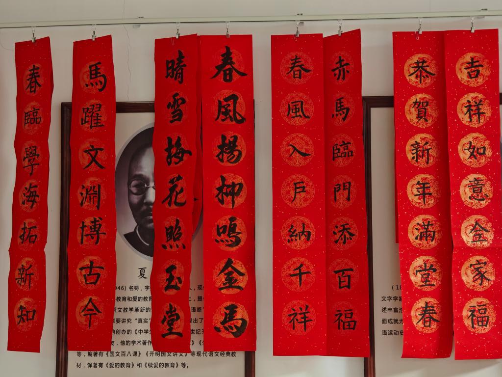 岁末冬深,新春将至。为传承中华优秀传统文化,让春联艺术走进校园生活,12月29日,beat365唯一官网在328报告厅外举办春联展览活动。一副副红纸墨字、气韵生动的春联悬挂展示,为冬日校园注入温暖而喜庆的节庆氛围,也传递出渐浓的年味与春意。