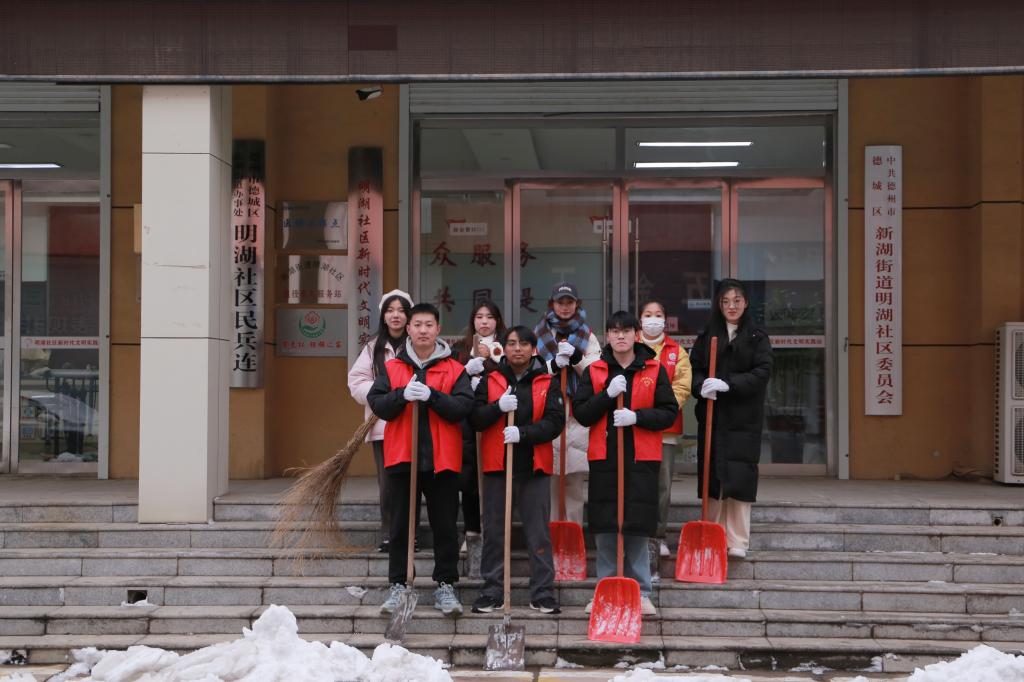 在寒冷的冬日里,德城区的街道上积雪厚重,甚至结冰,这给居民的出行带来了不便,也给社区带来了严重的安全隐患,为了解决这一问题,文学与新闻传播学院基层团支部自发组织起来,携带扫雪工具,来到明湖社区进行扫雪服务活动。活动中,青年志愿者们热情高涨,干劲十足。他们挥舞着扫帚,铲除积雪,清理道路。经过大家的共同努力,社区焕然一新,主干道上的冰雪被全部铲除,积雪导致的安全隐患也得以基本解决,居民的出行也变得更加方便。同学们用自己的实际行动践行了“为人民服务”的宗旨,为社区建设贡献了一份力量,并赢得了社区居民的广泛赞誉和认可。