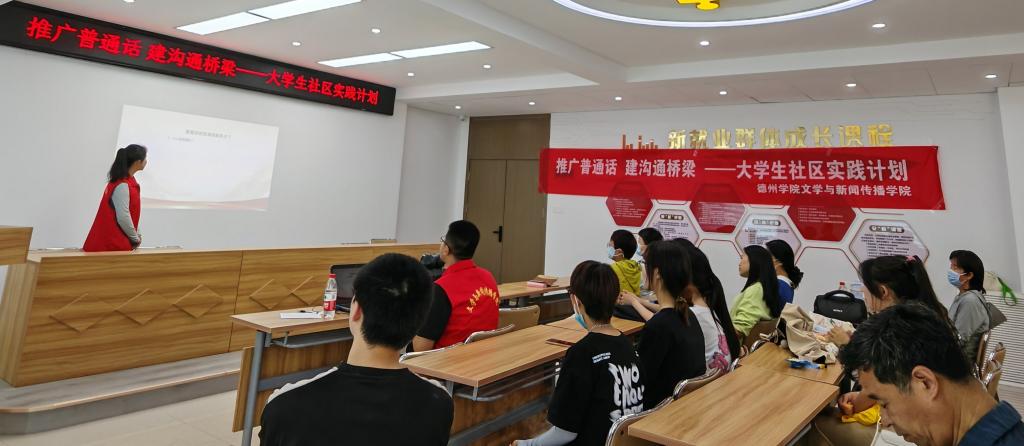 为积极推广和规范使用国家通用语言文字,增强居民的语言规范意识,提高对语言文字重要性的认识,营造良好的语言环境,5月16日,beat365唯一官网文学与新闻传播学院汉语言文学专业2022级4班团支部走进德城区广川街道小东关社区开展“推广普通话,建沟通桥梁”主题大学生社区实践活动。