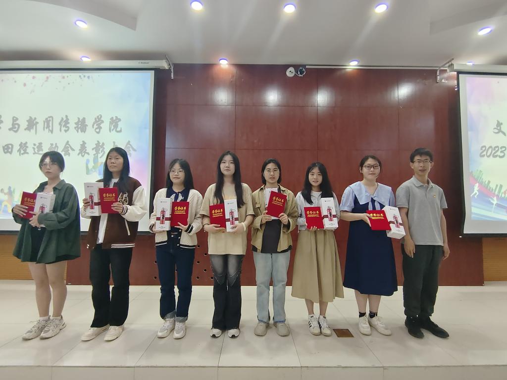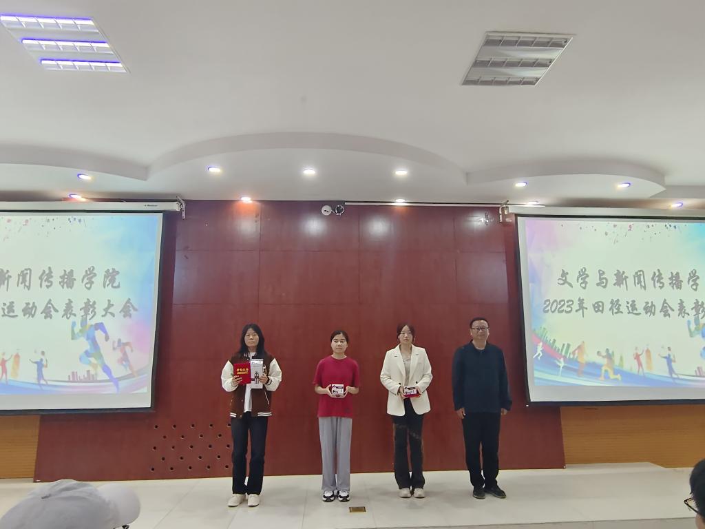 会议隆重表彰了在2023年田径运动会做出突出贡献的运动员、优秀组织者、团体项目。为获奖者颁发了证书及奖品。通过此次表彰大会的举行,增强了文学与新闻传播学院的集体凝聚力和向心力,突出学生榜样的示范和引领作用,弘扬奋勇拼搏、不惧挑战的向上精神,取得了很好的活动效果。