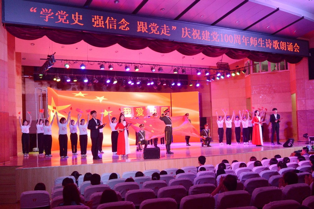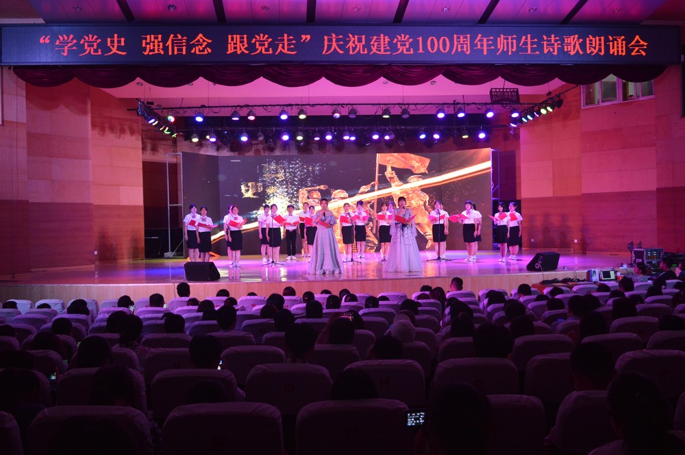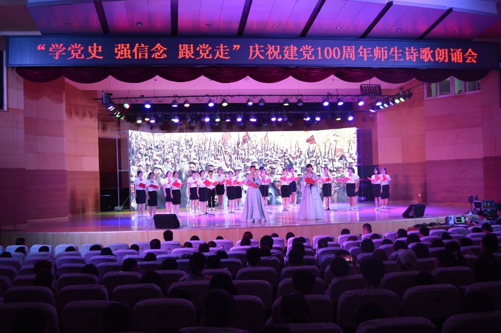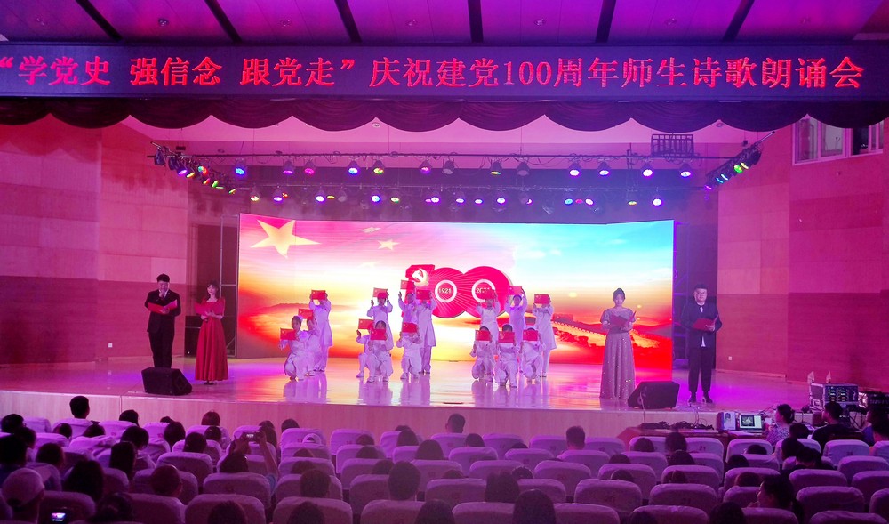为庆祝中国共产党成立100周年,引领广大师生学党史、听党话、跟党走,激励德院师生坚定理想信念,增强实现中华民族伟大复兴的使命感和责任感,为学校建设发展凝聚奋进力量,6月2日晚,学校在音乐厅举行“学党史 强信念 跟党走”庆祝建党100周年师生诗歌朗诵会。党委书记车滨,党委副书记王金利,党委委员、副校长迟沂军,党委委员、组织部部长、统战部部长杨恩红、党委委员、宣传部(教师工作部)部长任立春出席活动。