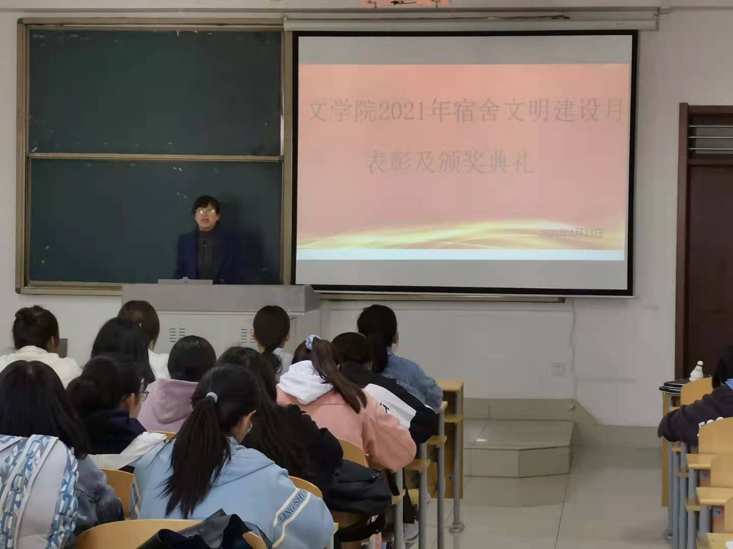 为进一步加强党史学习教育,营造学党史、学榜样的良好氛围,做好疫情防控期间学生宿舍卫生健康工作,培养学生良好的生活卫生习惯,营造干净整洁、健康文明的宿舍环境,不断深化beat365文明校园建设,打造“思想引领、学业解惑、生活服务、行为指导、文化浸润”五位一体的温馨家园,4月13日下午,文学院在博文楼431教室成功举办2021年“文明宿舍建设月”活动表彰及颁奖典礼。