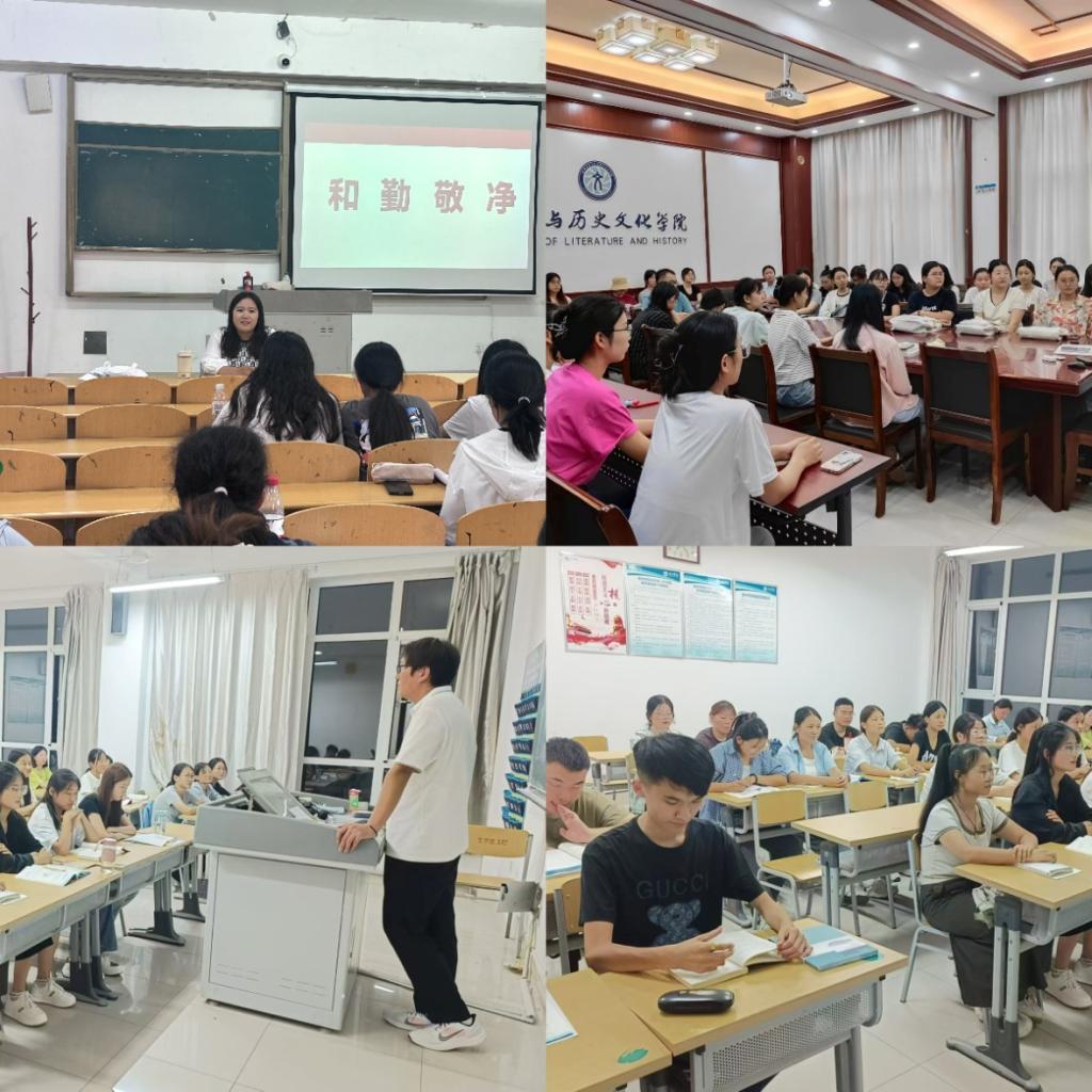 为全面落实习近平文化思想,凝聚以文化人、以文育人的教育共识, 9月1日,学院共八个新生班级以“和勤敬净”为文化主线召开了新生班会,由博士班主任、年级辅导员主讲。