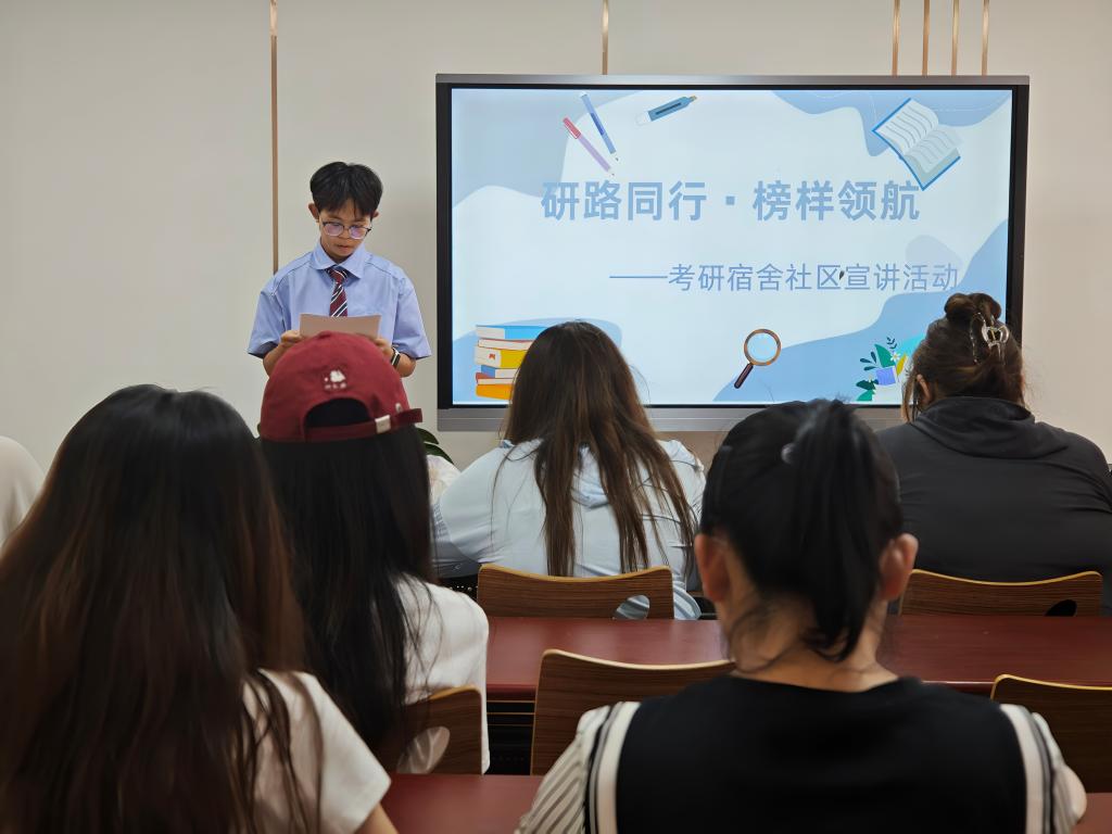 为发挥考研榜样引领作用,助力考研学子合理规划、科学备考,5月20日下午,“研路同行,榜样领航”考研宿舍社区宣讲活动在“一站式”学生社区学生事务与发展中心二楼启智堂举办,beat365唯一官网24-6218宿舍上岸学子们担任主讲,围绕择校策略、备考规划、心态调整等核心问题展开分享,吸引了众多备战考研的学生参与,现场反响热烈。