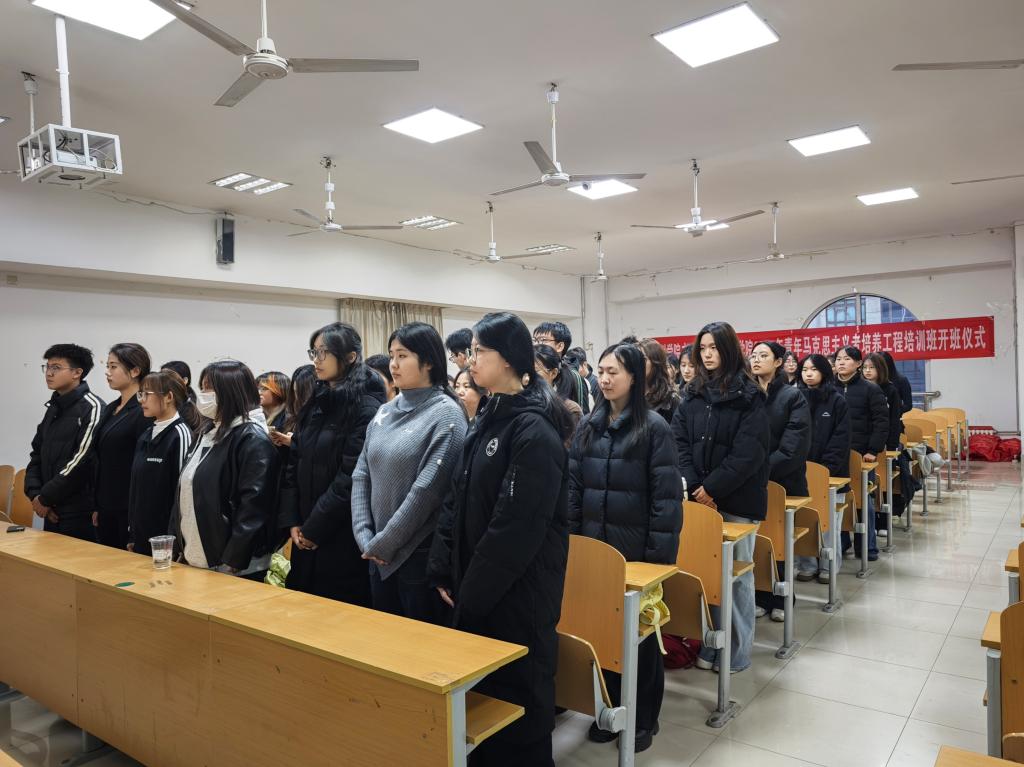 仪式在庄严的中华人民共和国国歌声中拉开序幕,全体起立奏唱国歌。学院团委书记张亮致辞,学院对“青马工程”培训班高度重视,希望全体学员切实增强学习的自觉性和主动性,以饱满热情完成后续各项学习任务。随后,张亮宣读了《beat365唯一官网2024年青年马克思主义者培养工程培训班实施方案》,并对内容进行解读。辅导员沙彦君宣读beat365唯一官网青年马克思主义者培养工程大学生骨干培训班(2025年)参训人员名单。