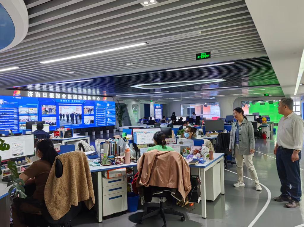 走访期间,学院一行参观了舜网融媒体中心、技术研发部等部门,详细了解企业运营模式和岗位设置。舜网负责人介绍了公司当前发展状况及人才需求:随着新媒体业务的拓展,公司急需新闻采编、短视频制作、数据分析、运营策划等方向的复合型人才,尤其注重应聘者的文字功底、新媒体实操能力、团队协作精神及学习适应能力。此外,企业希望与高校共建实习实训基地,通过“项目+人才”培养模式,提前介入学生实践能力培养,实现校企资源共享。