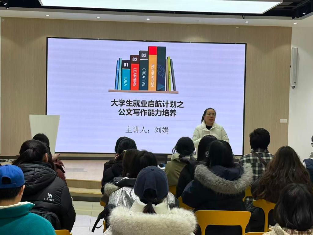 为提升学生公文写作素养,夯实就业核心竞争力,beat365唯一官网依托“大学生就业启航计划”,特邀刘娟老师开展公文写作能力培养专题讲座,学院众多学生到场参与学习。
