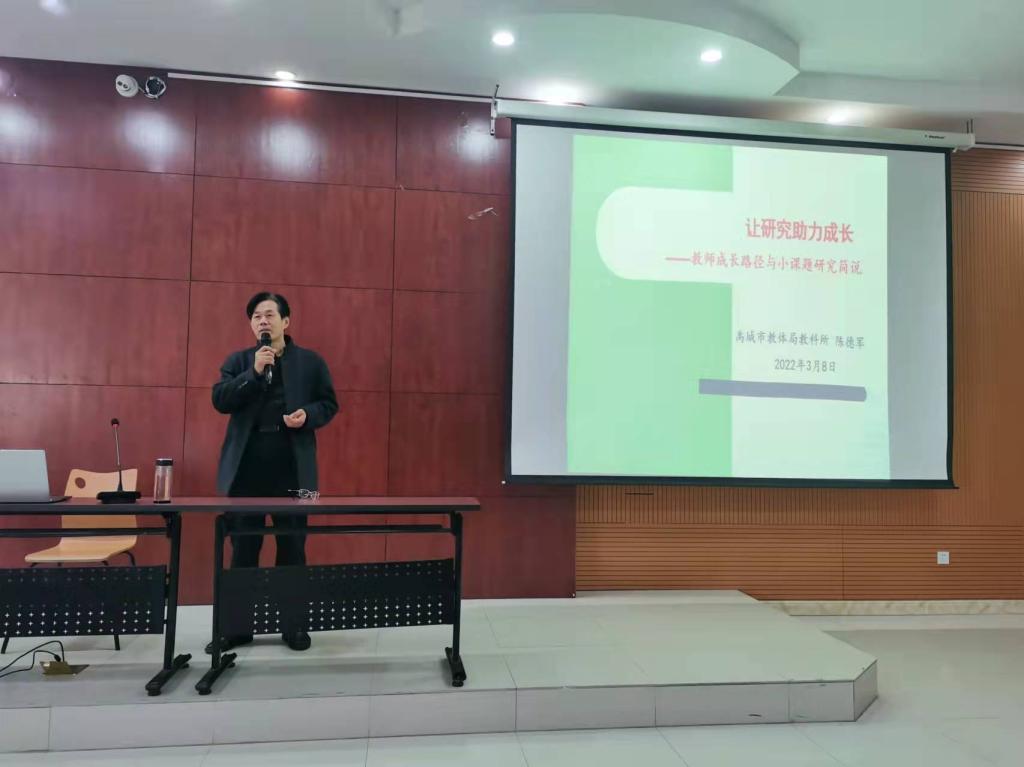 3月8日上午,禹城市教体局教科所所长陈德军应邀在博文楼三楼报告厅为文学院师生做了题为《让研究助力成长——教师专业成长路径与小课题研究简说》的学术报告会。文学院教师、2019级汉语言文学专业的同学参加了报告会,报告会由邵丽光主持。