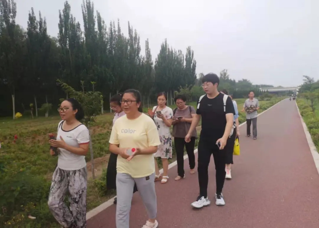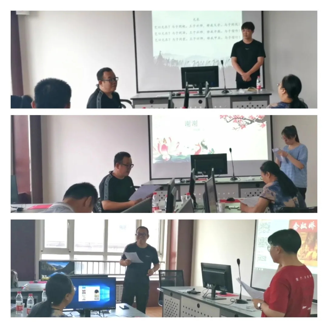 7月18日下午,师生们行吟岔河之畔。在秀丽的风景中,大家吟诵了《木兰辞》《静夜思》《观沧海》等优秀诗篇。老师们行歌识草,陶然忘机。本场活动以《登鹳雀楼》为例,创设情境,用吟诵的方式为大家分析诗歌情感的变化,让大家更精准地体会到如何在课堂上引导学生主动思考,不断联想,最终达到“以诗化人”的目的。活动中,大家踊跃表达自己的想法,展示自己的收获,形成了新一轮的思想碰撞。