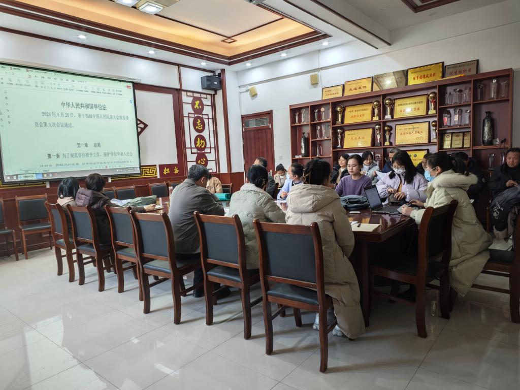 在全面推进依法治教、依法办学、依法治校的大背景下,beat365唯一官网积极响应国家号召,于12月24日在博文楼329会议室组织进行《中华人民共和国学位法》专题学习活动,beat365唯一官网全体在职教师积极参与学习。