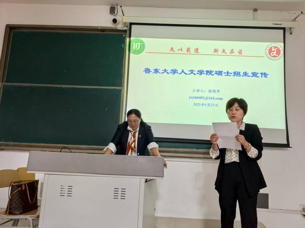 宣讲会上,徐艳华教授围绕“国际中文教育硕士培养模式与特色”,系统介绍了鲁东大学人文学院学科平台、培养方案与奖助体系。她指出,专业实行“1年理论+1年国内外实习+1年实践论文”的三段式培养,推行校内外“双导师”制,建有国家语委汉语辞书研究中心、山东省语言文字推广基地等高水平平台,着力提升学生的中华优秀文化传播能力与跨文化执教力。