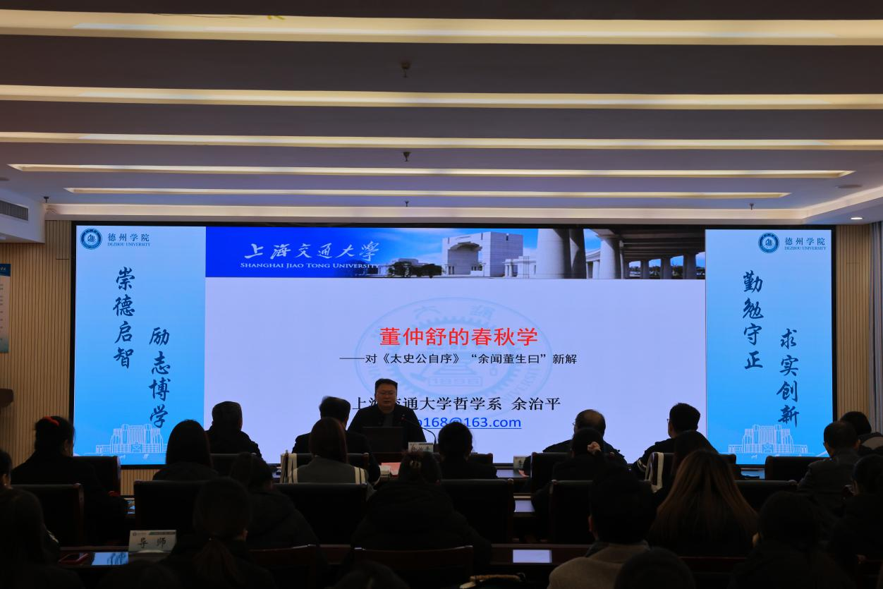 仪式结束后,书院开班,“仲舒讲堂”第一讲由余治平教授主讲,题为《董仲舒的春秋学——对<太史公自序>“余闻董生曰”新解》的学术报告。