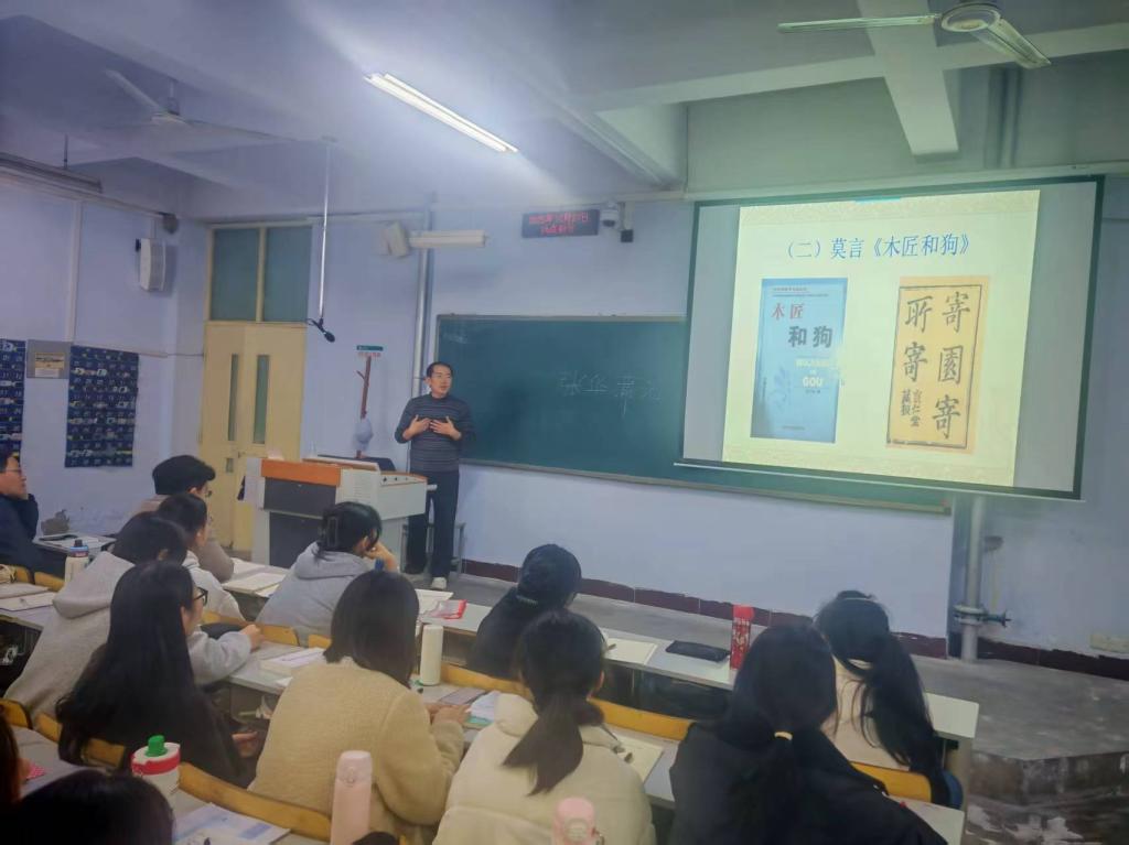 10月27日下午,beat365唯一官网在美术楼举办了题为《精读、泛读与考证》的学术报告会。报告会邀请了山东师范大学文学院博士生导师刘洪强教授。刘教授就中国文学的文本细读、问题意识、文本泛读等进行了讲解,提出了“案头书要少,心头书要多”的观点,推荐了《管锥编》《谈艺录》《七缀集》《容安馆札记》等著作。刘教授以结合实例的方式讲解了字词考证、本事考证、年代与作者考证、辩伪等研究方法。如结合历史文献、方言资料等解读了《三国演义》“豹头环眼,燕颔虎须”“面如重枣”的历史语境含义。学术报告会结束之后,刘教授与师生进行了互动交流,他介绍了自己的治学路径与治学心得。
