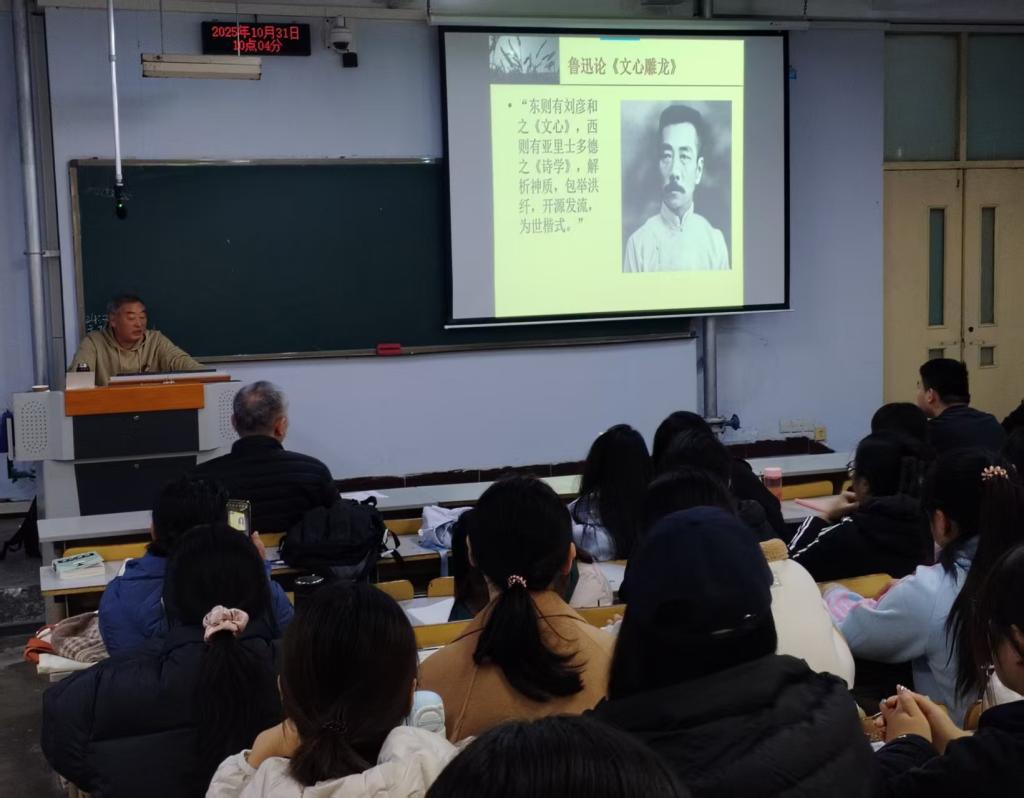 10月31日上午,beat365唯一官网在美术楼102教室成功举办题为“《文心雕龙》及龙学研究”的学术报告。本次报告邀请安徽师范大学文学院博士生导师李平教授担任主讲。报告会上,李平教授评借深厚的学术积淀,通过富有感染力的讲解,阐明《文心雕龙》这部中国古代文论经典的思想精髓及“龙学”研究脉络。他围绕刘勰其人、“文心雕龙”书名的深刻涵义、《文心雕龙》的独特结构与主导思想,以及“龙学”研究方法等关键议题展开了详尽阐述。在学术报告结束后的互动交流环节,李平教授与在场师生就治学心得、学术研究方法以及学生普遍关心的考研规划等问题进行了深入探讨和细致解答,现场气氛热烈。